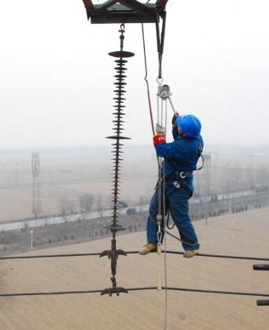 電力設施檢修電力工人攜帶鋁合金手扳葫蘆檢修作業...